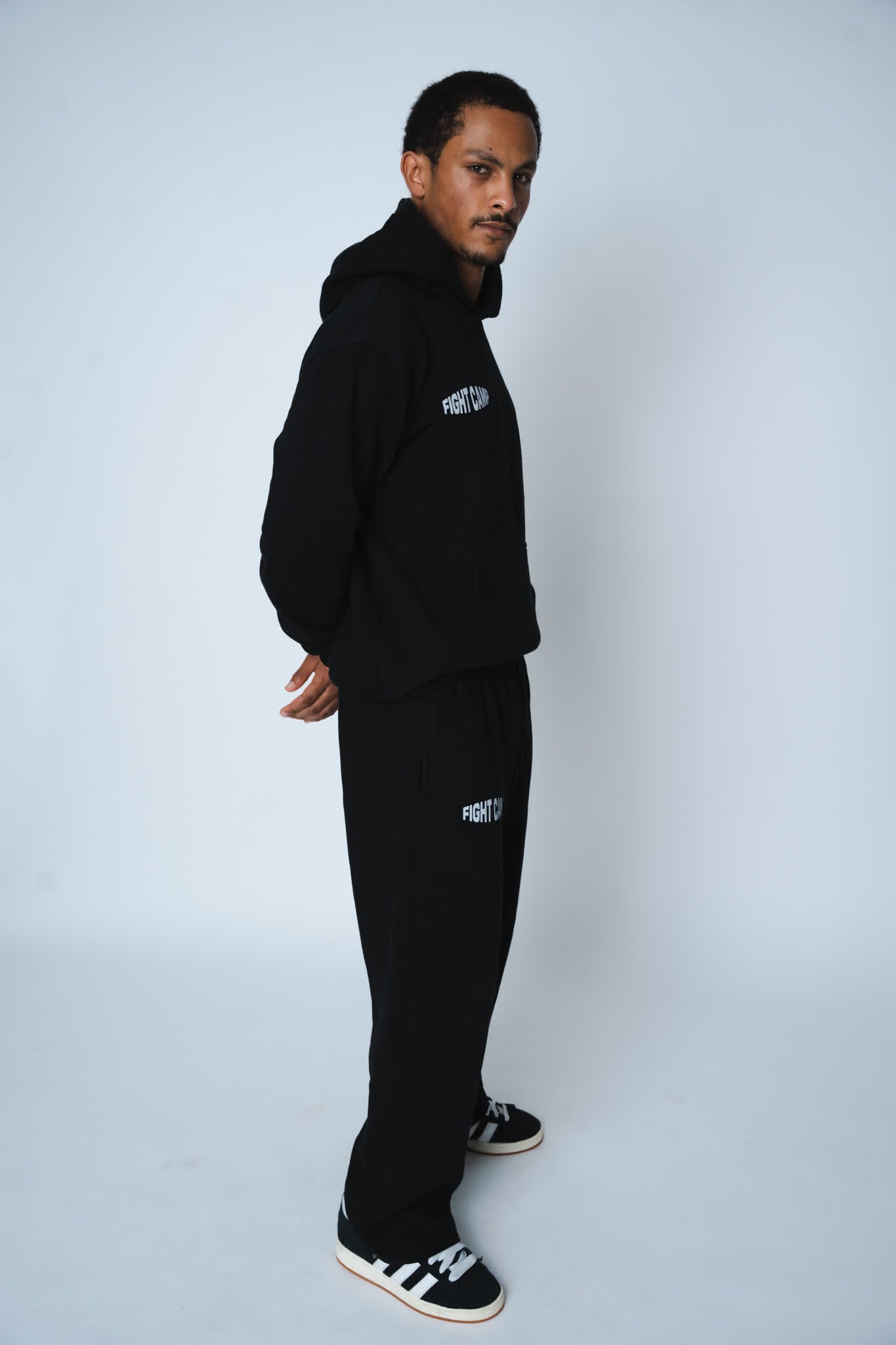 The complete fighter's uniform designed for serious training. This premium heavyweight set pairs a soft cotton-blend fleece hoodie with matching joggers, both featuring bold "FIGHT CAMP" branding on the chest and leg. The relaxed fit allows unrestricted movement during intense sessions, while the kangaroo pocket and adjustable drawstring waist add practical functionality. Constructed from 80% cotton and 20% polyester with ribbed cuffs and hem for durability. Machine washable and true to size.